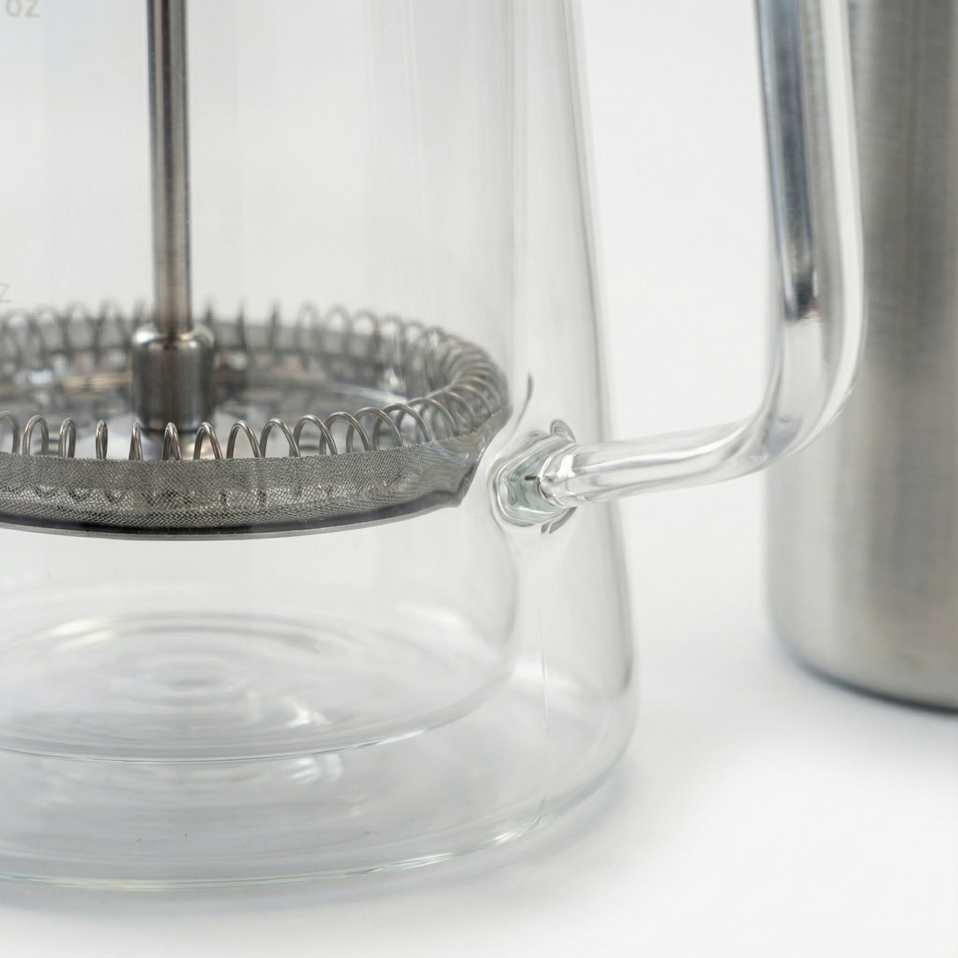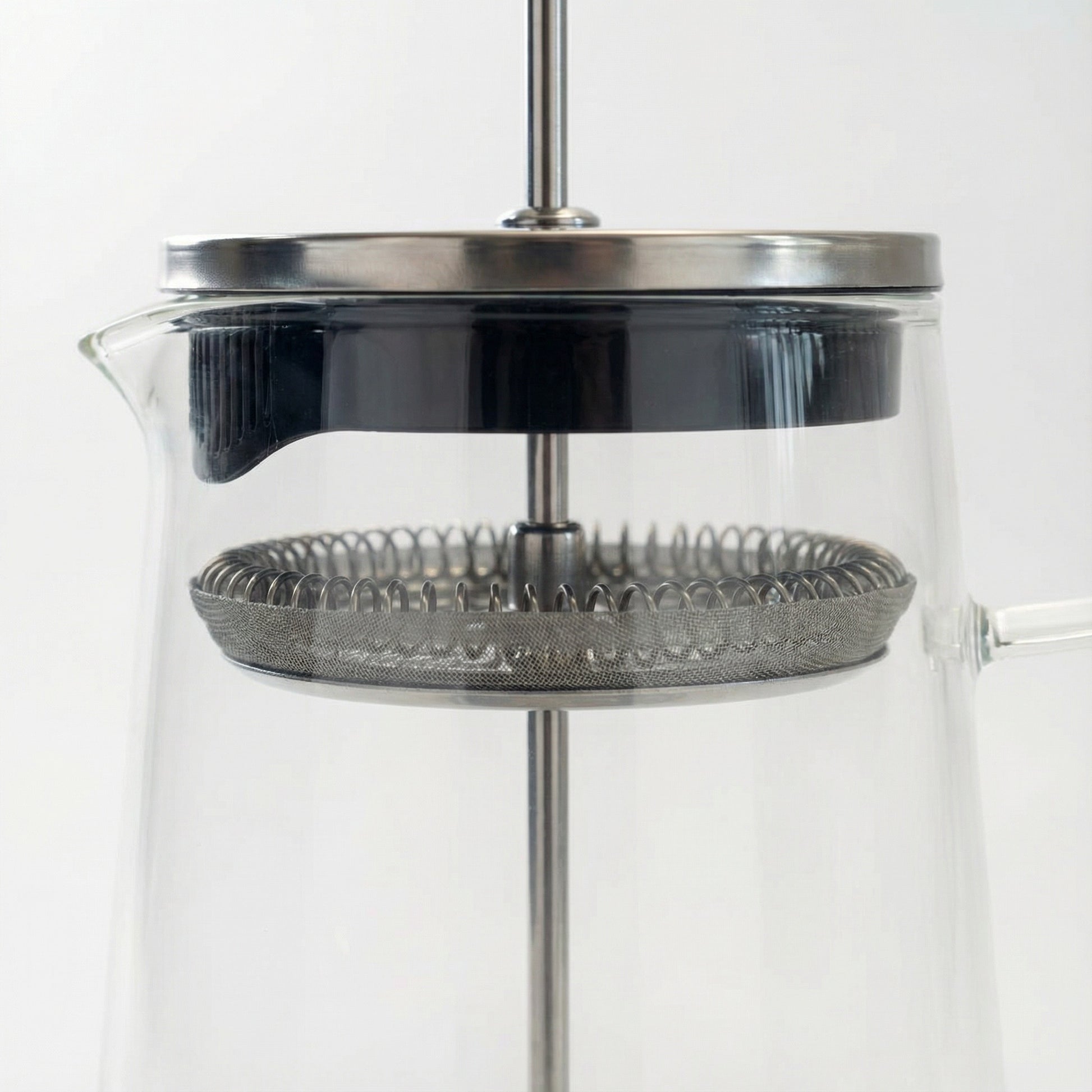 Cafetera émbolo estilo prensa francesa de vidrio transparente con