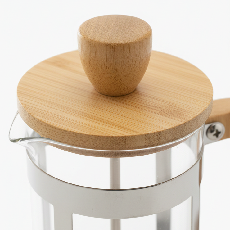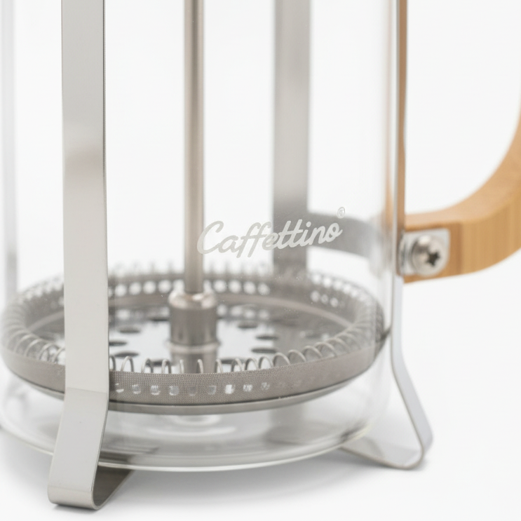 Cafetera émbolo o prensa francesa de vidrio borosilicato y bambú 350ml y 600ml Caffettino. Un diseño