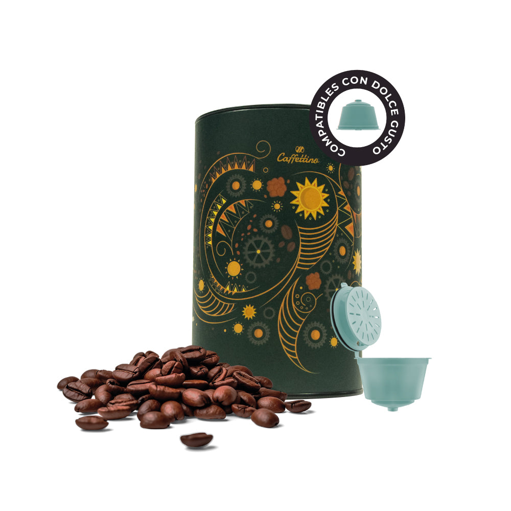 Nuestras eco latas llevan dentro la forma más sostenible y práctica de disfrutar tu café favorito. La eco lata combina la practicidad de llevar dentro de 8 cápsulas recargables, compatibles con máquinas Dolce Gusto, con un diseño elegante y hermético para conservar la frescura de tu café de especialidad.